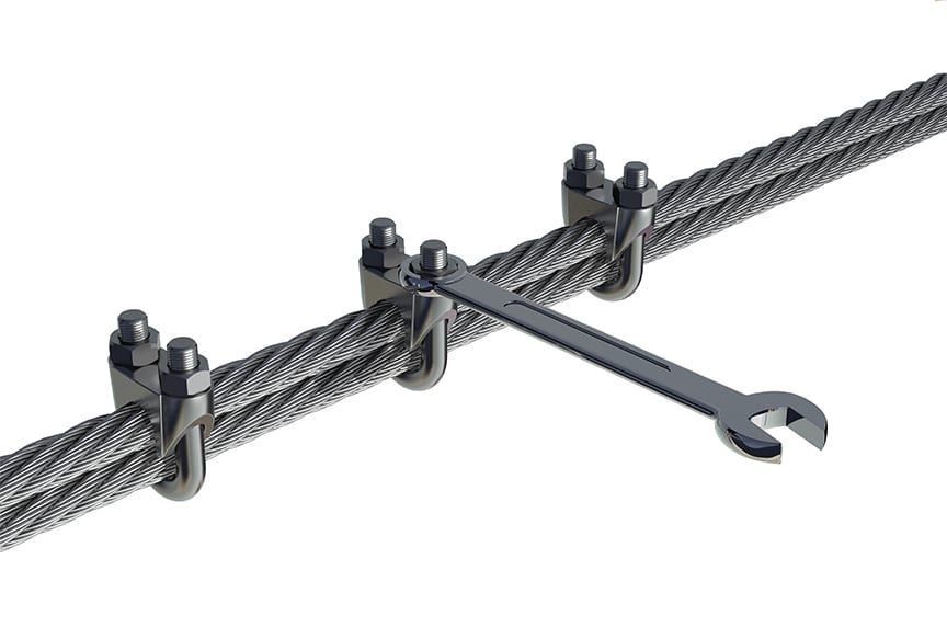 Wire rope clips require the use of a torque wrench in order to function properly. Torquing the nuts on the clips too much or too little can cause the clip to fail. If the clip is over-torqued, it could damage the threads of the wire rope. If the clip is under-torqued, the holding power of the clip is diminished and the wire rope could slip through.