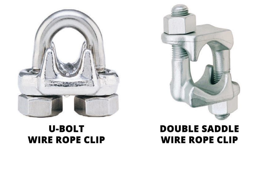There are two main types of wire rope clips—U-Bolt and double saddle clips. U-Bolt wire rope clips are the most common and may be made of forged or malleable metal.