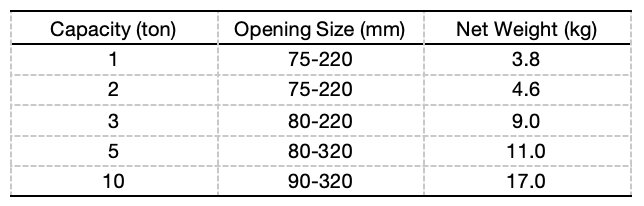As the load capacity increases, the opening size and self-weight of the beam clamp also increase accordingly. The opening size refers to the thickness range of the steel beam flange that the beam clamp can grip. When using, it is necessary to select the model with an opening range matching the actual size of the steel beam.