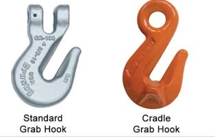 Cradle grab hook – The belly of a cradle grab hook is casted like a hammock for a piece of chain to lay in. Generally speaking, if you shorten a length of chain using a cradle grab hook, you have 100% of the Working Load Limit.