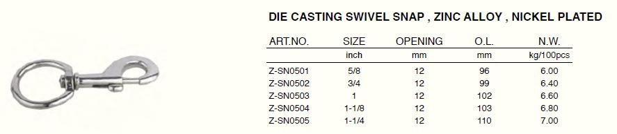 Die Casting Swivel Snap , Zinc Alloy , Nickel Plated