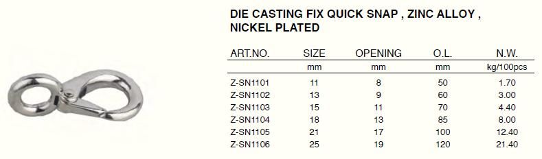 Die Casting Fix Quick Snap , Zinc Alloy , Nickel Plated