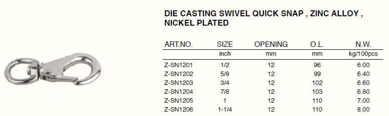 Die Casting Swivel Quick Snap , Zinc Alloy , Nickel Plated