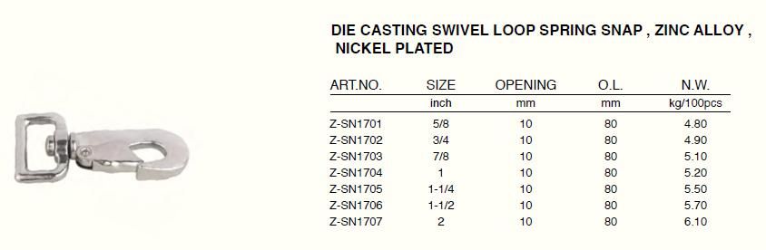 Die Casting Swivel Loop Spring Snap , Zinc Alloy , Nickel Plated