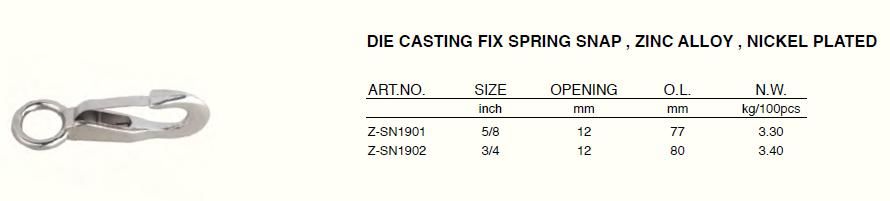 Die Casting Fix Spring Snap , Zinc Alloy , Nickel Plated