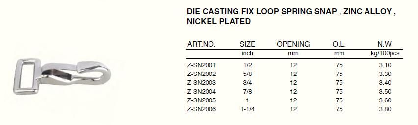 Die Casting Fix Loop Spring Snap , Zinc Alloy , Nickel Plated