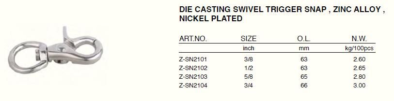 Die Casting Swivel Trigger Snap , Zinc Alloy , Nickel Plated