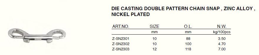 Die Casting Double Pattern Chain Snap , Zinc Alloy , Nickel Plated