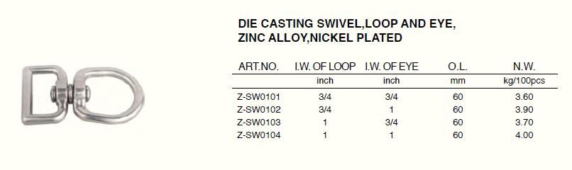Die Casting Swivel,Loop And Eye, Zinc Alloy, Zinc Plated