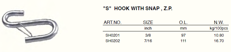 "S" Hook With Snap, Z.P.