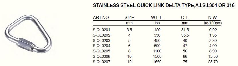 Stainless Steel Quick Link Delta Shape, A.I.S.I.304 Or 316