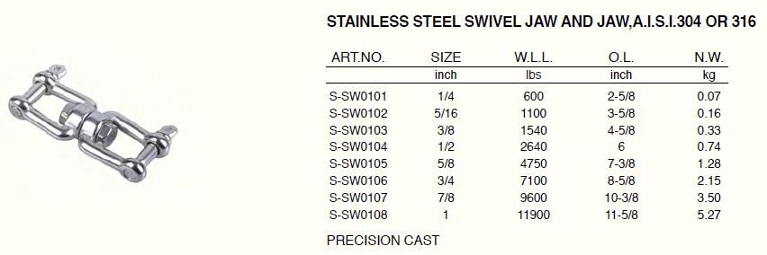 Stainless Steel Swivel Jaw And Jaw, A.I.S.I.304 Or 316