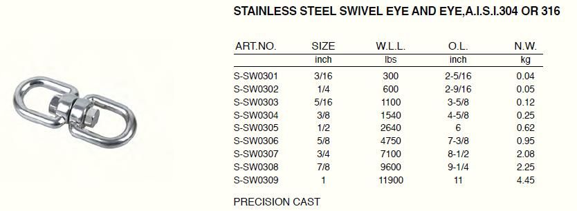 Stainless Steel Swivel Eye And Eye, A.I.S.I.304 Or 316