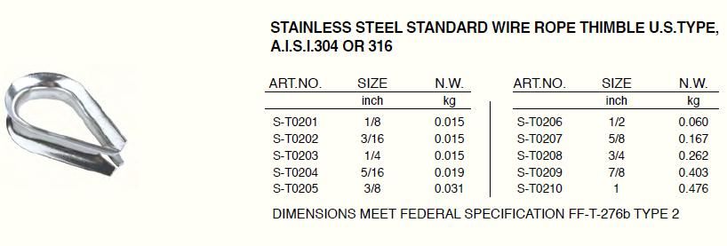 Stainless Steel Standard Wire Rope Thimble U.S.Type, A.I.S.I.304 Or 316